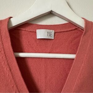 TSE 100% Pure Cashmere V Neck Cardigan In Coral Size XS