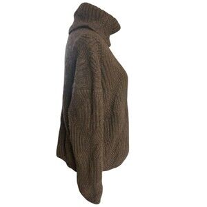 TSE 100% Pure Cashmere Womens Sz M Chunky Cable Kbit Cowl Neck Brown Sweater