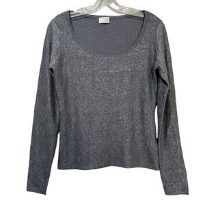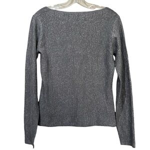 TSE Medium Cashmere Blend Silver Metallic Long Sleeve Scoop Neck Blouse Y7