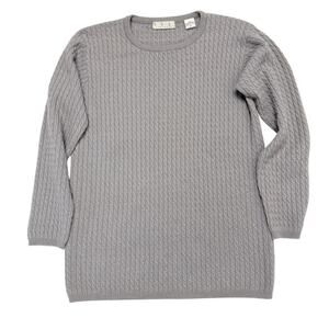 TSE Pure Cashmere Crew Neck Long Sleeve Cable Knit Sweater Grey size Small