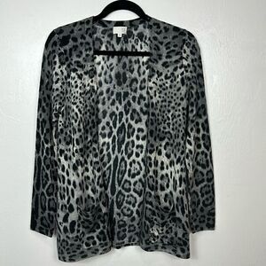 TSE Pure Cashmere Leopard Print Open Front Long Sleeve Cardigan Sweater Size M