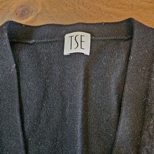 TSE Silk Cashmere Blend Boyfriend Style Cardigan Black Size Medium Quiet Luxury