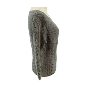 TSE Steel Melange Gray Knit Boatneck 100% Wool Sweater 3/4 Sleeves Small