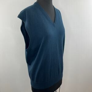 TSE Teal Blue Silk Cashmere Blend V-Neck Sleeveless Knit Sweater Top.