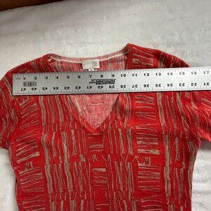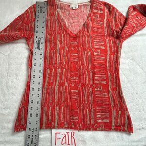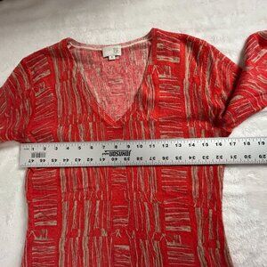 TSE Womens Red Beige Abstract Pattern Cashmere V-Neck Sweater Medium Pullover