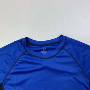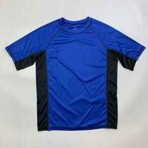 TSLA Swim Shirt Mens XS Extra Small Blue Black Short Sleeve Loose Fit Rashguard