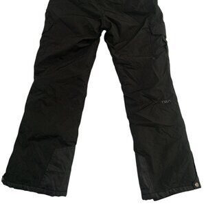 The TSLA Women's Black Snow Pants Waist in size Small are perfect for winter sports like skiing. Made from polyester with a straight leg style and a 28-inch inseam, these pants feature a solid black color and a compression area at the waist for a comfortable fit. The adjustable waist adds to the convenience and style, making them a great choice for outdoor activities in cold weather. With a regular fit and machine washable design, these snow pants are both functional and easy to care for.