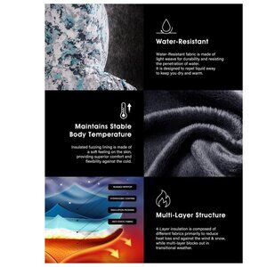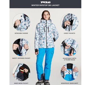 New without tags. Size L. The TSLA Women's Winter Ski Jacket is a high-performance outerwear piece designed for cold weather activities. Made from 100% polyester, it features a waterproof and insulated construction with a soft-touch fuzzy lining, multiple pockets for storage, and a detachable hoodie for versatile wear. Perfect for skiing, snowboarding, and other winter sports, this jacket combines functionality with style.