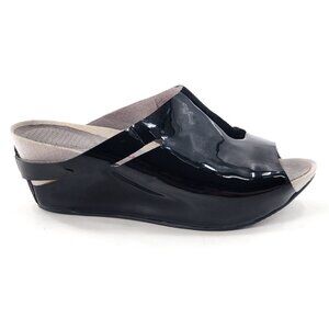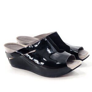 TSUBO Ovid Combo Wedge Patent Leather Suede Sandal Black Platform Peep Toe