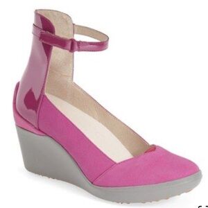 TSUBO Pink suede and patent leather wedge w/8.5 Dallin' Ankle Strap Pump…