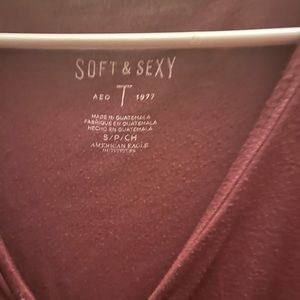 Maroon in color, in good condition. One button is missing.