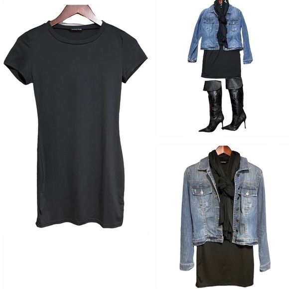 Short Sleeve Mini Basic T-Shirt Dress in Black Size Small