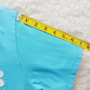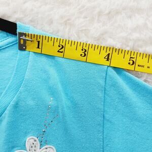 Sun International, floral applique tee, aqua rhinestone shirt, women’s cotton t-shirt, scoop neck blouse, embellished casual top, Whimsycore shirt, bright Y2K style