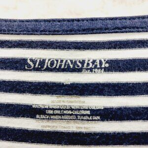 St. John’s Bay, striped cotton top, nautical blouse, roll tab sleeve shirt, cruise wear, cotton striped tee, sailor style top, relaxed fit, boat-ready look, coastal classic