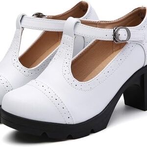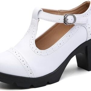 T-Strap Platform Mid-Heel Square Toe Oxfords Dress Shoes Size 8