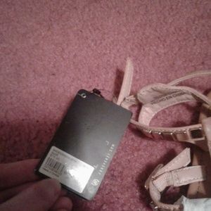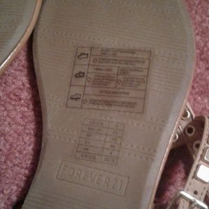 Tan Brown sandals with gold embellishments. Brand new. T-strap with buckle. Never worn. Still with tag. Flattened a bit because it was in the box so long, but when tried on, look great.