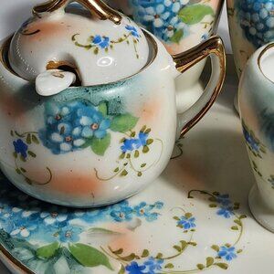 TT Takito Co Condiment Set Japan Hand Painted Cream Sugar Salt Pepper Tray