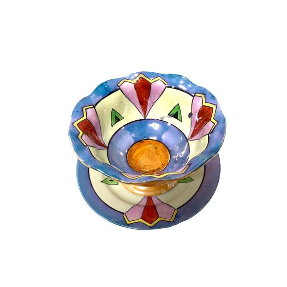 TT Takito Hand Painted Japan Footed Scalloped Edge Luster Ware Bowl & Plate