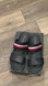 2” Platform , two straps, Hilfiger name across the front strap and red whit blue canvas material on second strap. Comes in original box