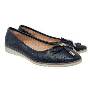 T.TACCARDI Size 35 Black Perforated Ballet Flats Shoes Bow Comfort