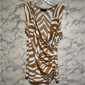 Color/Pattern: Khaki & Soft White Zebra Approximately 25ln From Shoulder To Hem Model Is 5'11 And Is Wearing A Size Small. Measurements May Vary Slightly By Size. Design Details: Surplice Bust And Ruched Left Side 95% Polyester, 5% Spandex Machine Wash Imported
