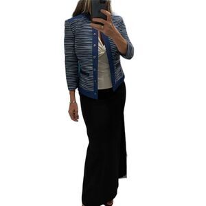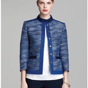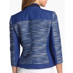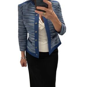 T TAHARI Ruby Blue Tweed 3/4 Sleeves Pockets Jacket .Size 4