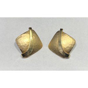 TTC 925 Modernist Hammered Earrings Stud Post Pierced Abstract Square Swirl