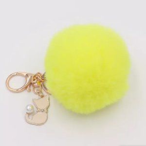 TT-Rabbit Faux Fur Ball Key Chain / Purse Accessory with Cat - Yellow