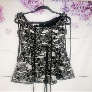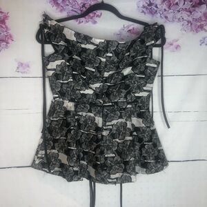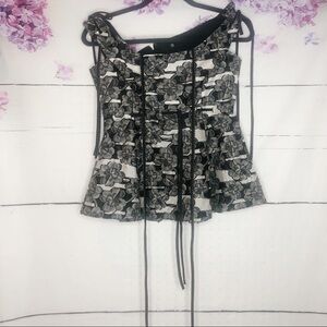 Stunning silk-blend florall corset tank with silk string accents drapped all over.