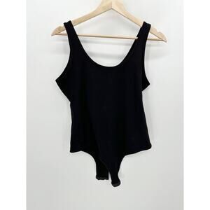 TTWELL Bodysuit Women LARGE Black Cotton Spandex Blend Stretch Sleeveless