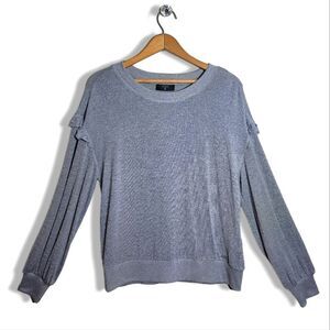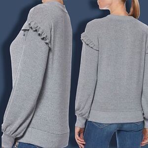 T Tahari NWT Grey Heather Sweater with Ruffle Shoulder