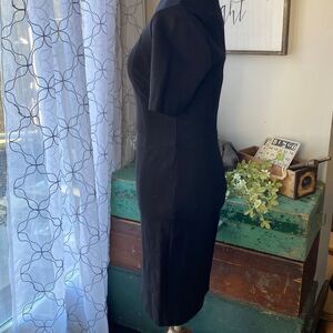 T Tahari black bodycon soft stretch midi dress size 8 classic minimalist