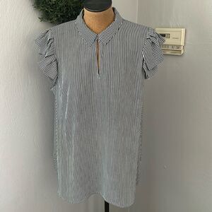 T Tahari woman black and white stripe blouse top size 2X