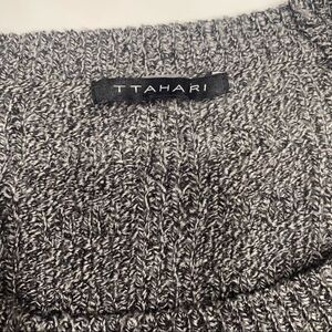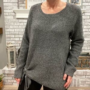 T Tahari Gray Knit Marled Side Tie Sweater Medium Cozy knit stretch oversized