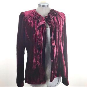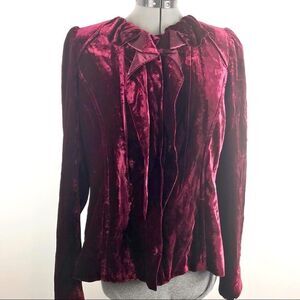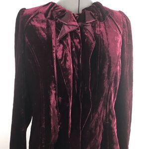 Gorgeous T Tahari Wine Velvet Ruffle Front Blazer Jacket
