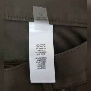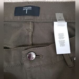 T-Tahari~Woman Size 12~Olive Green Ponte Slim Pants Zipper Front, Stretch.