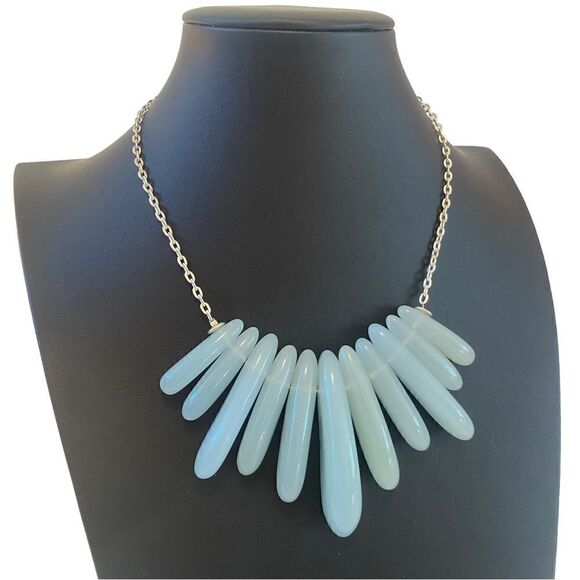 T Thari Bluish Gray Cascading Acrylic Statement Necklace.