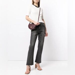 The Amethyst Jean is a slim-fit silhouette with a slight flare which, when worn, achieves a highly flattering, elongated look. This flare-leg silhouette is crafted from Japanese hybrid fiber denim that lets the body move freely while being elegantly shaped. Each hand-finished pair is detailed with signature luxurious gold plated buttons and a custom buttonhole stitch in amethyst.