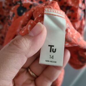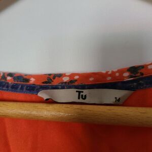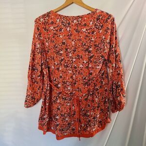 TU Floral Tangerine Orange 3/4 Length Sleeve Blouse sz 14