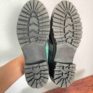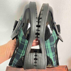 TU Sole Comfort Green and Blue Plaid Patent Loafers with Tassels Women UK Size 4
