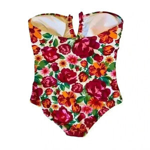 TU Swimwear Size 18 White Floral Multicolored One Piece Halter Top Swimsuit