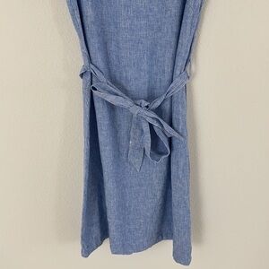 Tu Women Linen Blend Minimalist Mini Dress ~ High neck, sleeveless, waist tie.