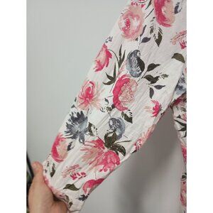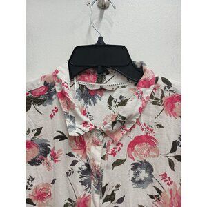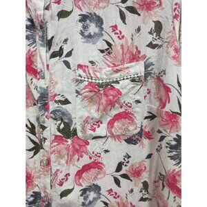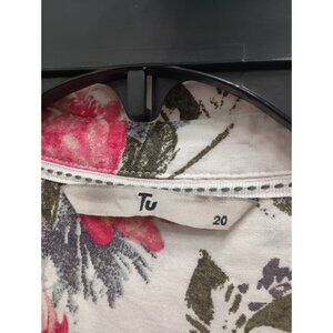 TU Womens Coastal Lagenlook Tunic Top Sz 20 Floral Linen Blend 3/4 Sleeve Casual