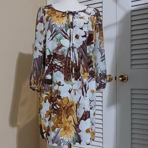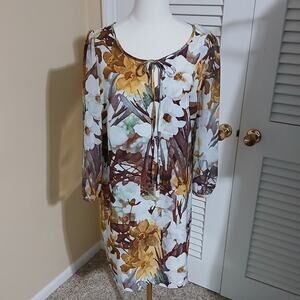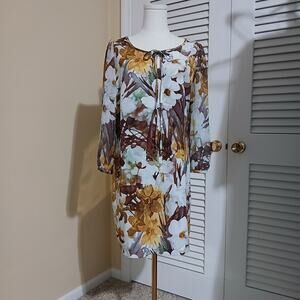 TU size UK14 vintage floral elegance modern shift 3/4 sleeve tie-neck key-hole