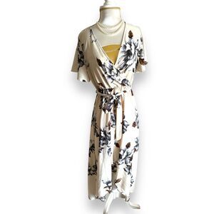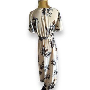 TUA Women's White Floral High Low V-neck Tie Waist Maxi Dress sz S Beachy Whimsi