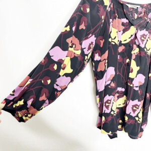 TUCKER NYC The Classic Blouse Silk button front purple floral womens size S/M