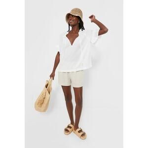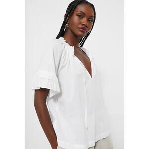 A great complement to cutoff denim, the Blanc Cassis Tops reminds us of seashells on the coastline. With its easy shape, ruffling along the collar and sleeves, and tassel details, the Cassis Top is the right blend of beautiful and breathable.