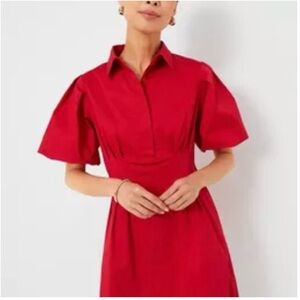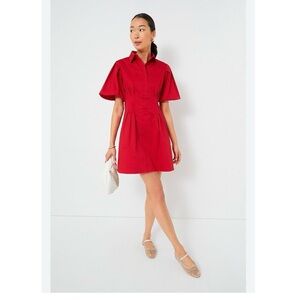 This vibrant red mini dress by Tuckernuck features a classic shirt style with a polo collar and puff short sleeves. Its A-line silhouette is perfect for casual, work, or cocktail occasions, offering a chic and versatile look.