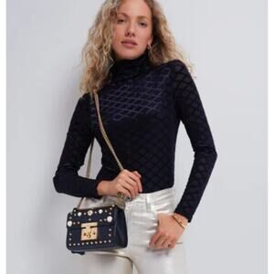 TUCKERNUCK Black Mally Burnout Turtleneck Womans XL Classic Chic