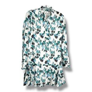 TUCKERNUCK Budding Bluebell Tate Shirt Ruffle Collar Dress in Blue Blooms Size L